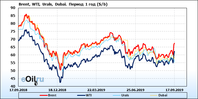 Мировые цены на нефть выросли более чем на пятнадцать процентов после сокращения Саудовской Аравией добычи нефти, свидетельствуют данные торгов. По состоянию на 09:00 мск цена ноябрьских фьючерсов на североморскую нефтяную смесь марки Brent выросла до 69,27 доллара за баррель, нефть марки WTI — до 62,66 доллара за баррель. Крупнейший экспортер и один из трех крупнейших производителей нефти — Саудовская Аравия после субботней атаки на НПЗ сократила производство сырья более чем вдвое: на 5,7 миллиона баррелей в сутки с обычной отметки в примерно 9,8 миллиона.