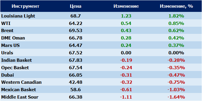 Нефть. Цены на сорта. Данные на 18.01.2018