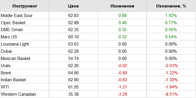 Нефть. Цены на сорта. Данные на 21.02.2018