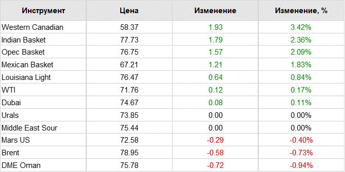 Так на момент 7:53 по московскому времени  июльские фьючерсы на нефть марки Brent повысились в цене на 58 центов или 0,7%, достигнув цены $79,09 за баррель.