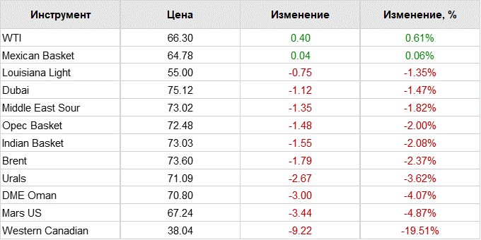 Нефть. Цены на сорта. Данные на 22.06.2018