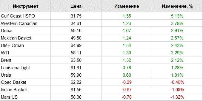 По состоянию на 7.46 мск цена январских фьючерсов на североморскую нефтяную смесь марки Brent снижалась на 0,5% — до 63,65 доллара за баррель, январских фьючерсов на нефть марки WTI — на 0,65%, до 58,2 доллара за баррель.