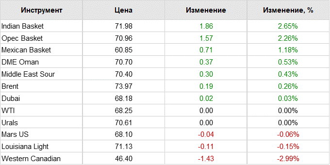Нефть. Цены на сорта. Данные на 23.04.2018