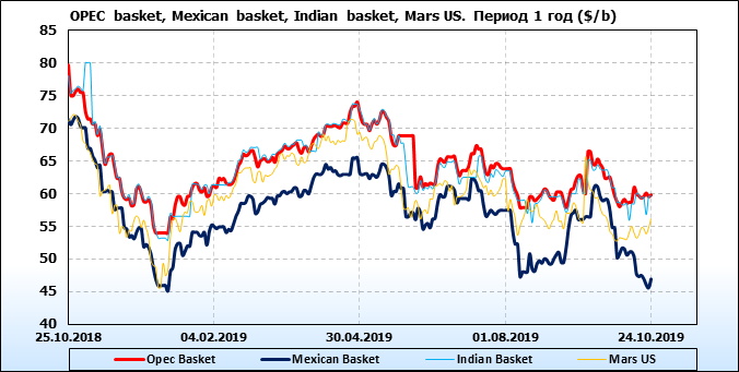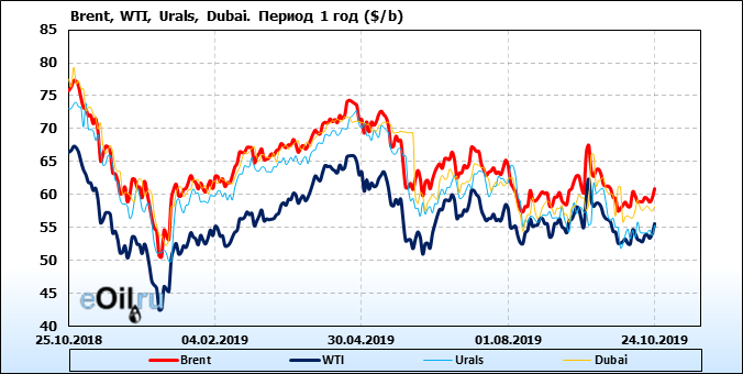 Влияние на цены на нефть оказывает статистика минэнерго США, согласно которой коммерческие запасы нефти (исключая стратегический резерв) за неделю, завершившуюся 18 октября, уменьшились на 1,7 миллиона баррелей, или на 0,4%, до 433,2 миллиона баррелей. Аналитики наоборот ожидали роста показателя на 2,2 миллиона баррелей.