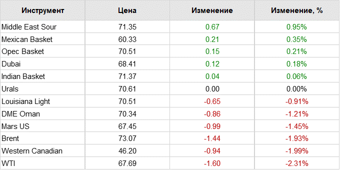 Нефть. Цены на сорта. Данные на 25.04.2018