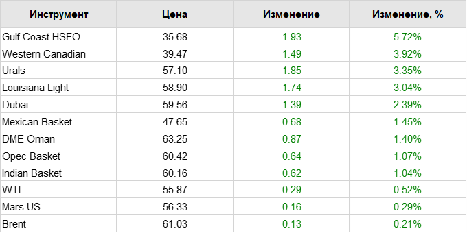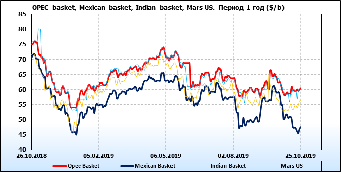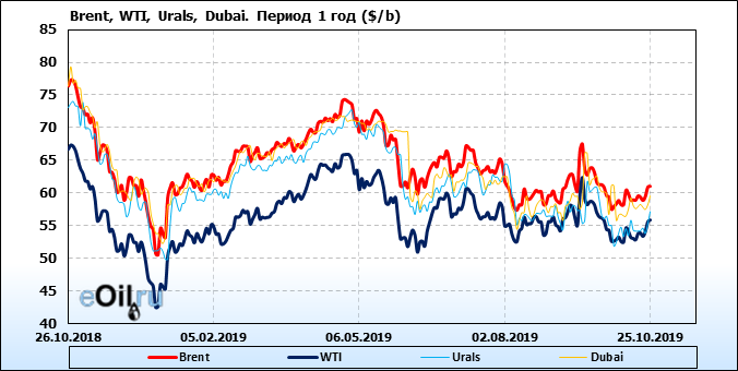 Нефть. Цены на сорта. Данные на 25.10.19