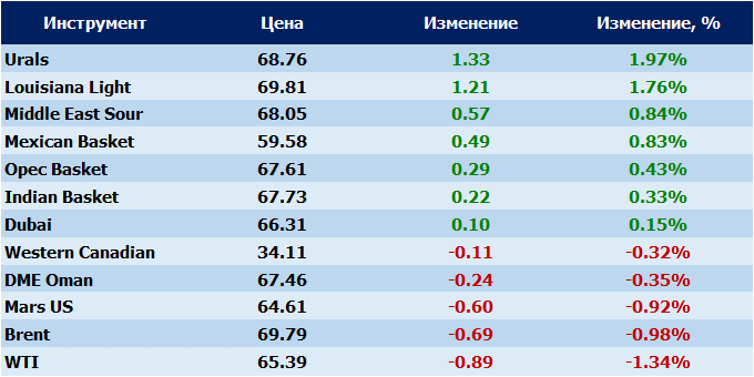 Нефть. Цены на сорта. Данные на 26.01.2018