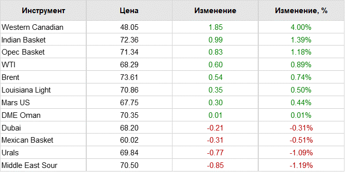 Стоимость июньских фьючерсов на нефть марки Brent выросла на 0,61% – до 74,45 доллара за баррель, цена июньских фьючерсов на нефть марки WTI поднялась на 0,48%, составив 68,38 доллара за баррель.