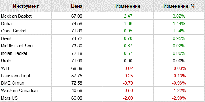 Нефть. Цены на сорта. Данные на 26.06.2018