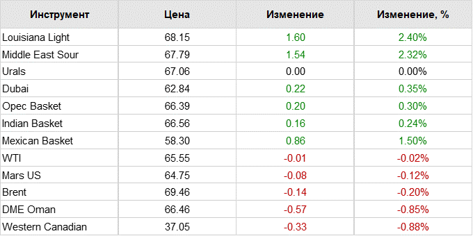 Майский фьючерс на WTI на Нью-Йоркской товарной бирже NYMEX также потерял $0,33 (0,5%) и составил $65,55 за баррель.