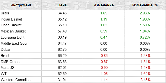 Нефть. Цены на сорта. Данные на 28.02.2018