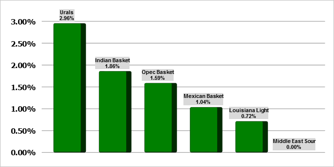 Что касается других товаров, торгующихся на ICE, фьючерс на нефть Brent с поставкой в мае снизился на 1,37%, достигнув отметки 66,37 долл. за баррель, а разница в цене между контрактами на нефть Brent и нефть WTI составила 3,46 долл. за баррель.
