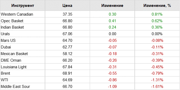 Котировки фьючерсов на нефть WTI на май утром в среду уменьшились на $0,58 (0,89%) — до $64,67 за баррель. По итогам прошлой сессии их цена снизилась на $0,3 (0,46%), завершив торги на отметке $65,25 за баррель.