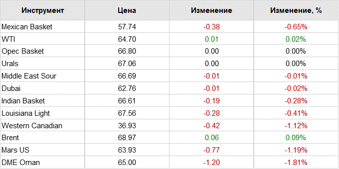 Накануне майская Brent подешевела на $0,58 (0,83%), до $69,53 за баррель, WTI — на $0,87 (1,33%), до $64,38 за баррель. Инвесторов напугал резкий рост доллара и новый рекорд нефтедобычи в США.