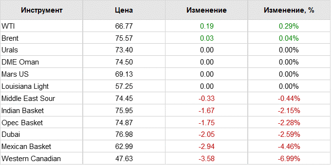 К 8:40 августовский фьючерс нефти Brent вырос на 0,35% до 75,58 доллара за баррель, июльский фьючерс WTI, напротив, потерял 1,7% — до 66,72 доллара.