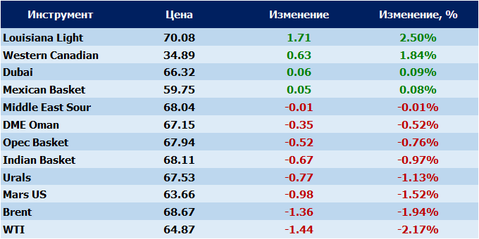 Нефть. Цены на сорта. Данные на 30.01.2018