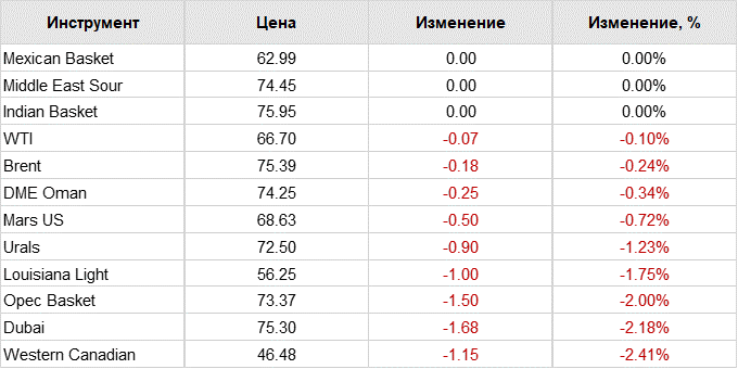 Июльские фьючерсы на нефть марки Brent на лондонской бирже ICE Futures к 8:01 по московскому времени подешевели на $0,15 (0,20%) — до $75,24 за баррель. На торгах в предыдущий день их цена увеличилась на $0,09 (0,12%) и составляла на закрытие $75,39 за баррель.