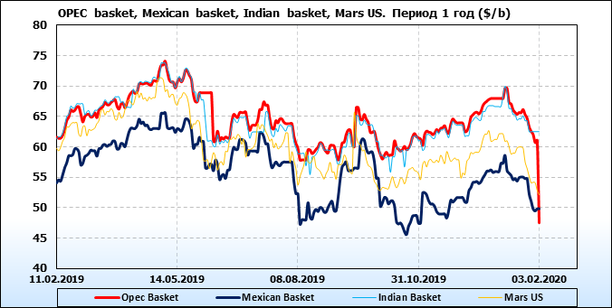 Нефть. Цены по сортам на 03 февраля 2020