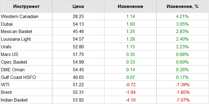 По данным торгов, к 06.30 по московскому времени цены на нефть североморского сорта Brent подросли на 0,67%, до 55,30 долларов за баррель. Западнотехасская нефть WTI к этому времени подорожала на 0,59%, до 51,25 доллара за бочку.