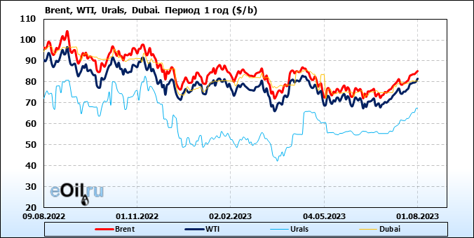 Напомним, принятый документ запрещает западным компаниям транспортировать, страховать и финансировать российскую нефть, если она продается дороже 60 долларов. Впервые превышение произошло 12 июля, когда, по данным агентства Argus, цена Urals в черноморском порту Новороссийск выросла до 60,78 долл. После небольшой просадки на следующий день, с 14 июля наблюдался стабильный рост показателя, 25 июля стоимость впервые с начала 2023 года превысила 65 долл., а скидка к Brent сократилась до 17,4 долл.