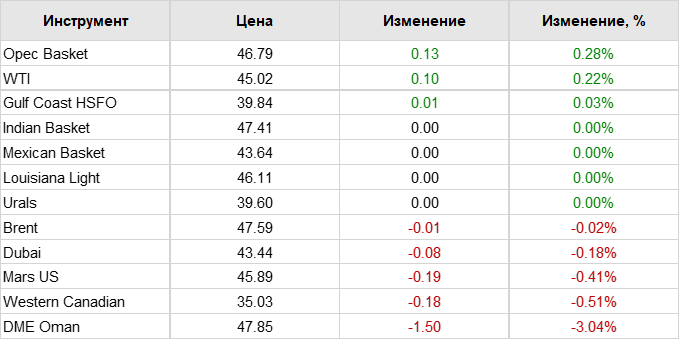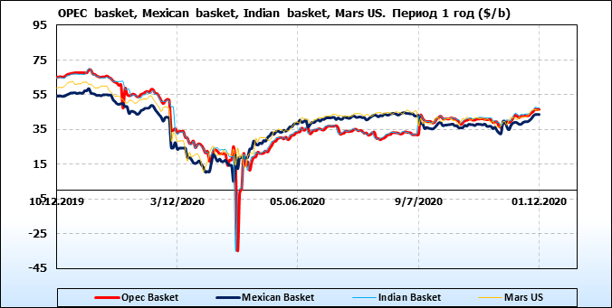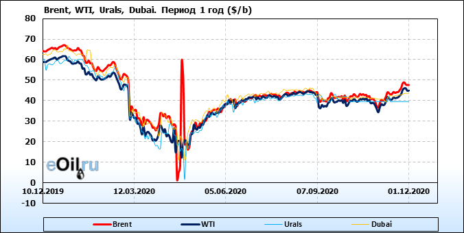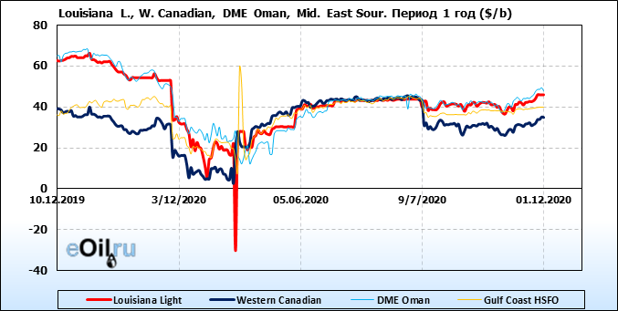 Нефть. Цены по сортам на 1 декабря 2020