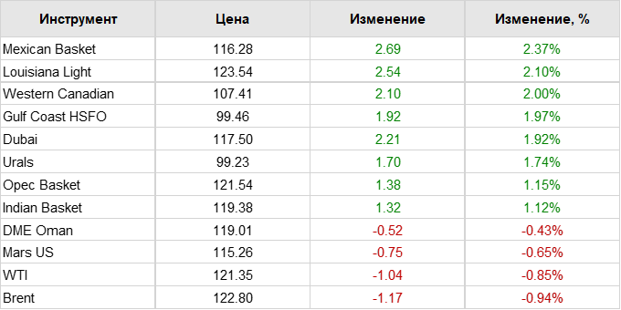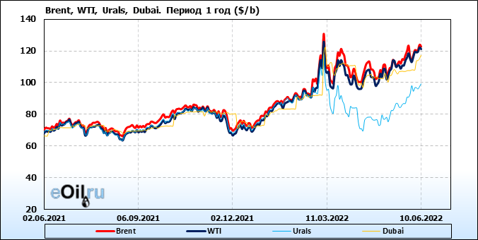 Нефть. Цены по сортам на 10 июня 2022