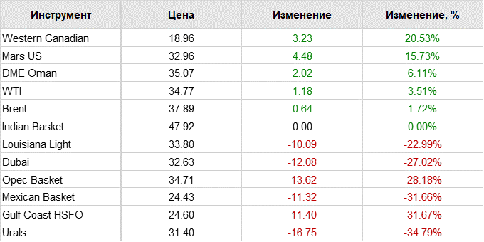По состоянию на 05.13 мск цена майских фьючерсов на североморскую нефтяную смесь марки Brent росла на 4,03%, до 38,72 доллара за баррель. Стоимость апрельских фьючерсов на нефть марки WTI поднималась на 3,26% до 35,48 доллара за баррель.
