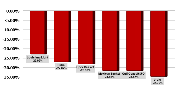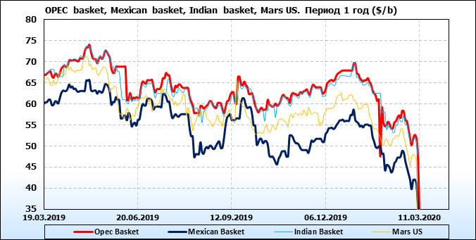 Нефть. Цены по сортам на 11 марта 2020