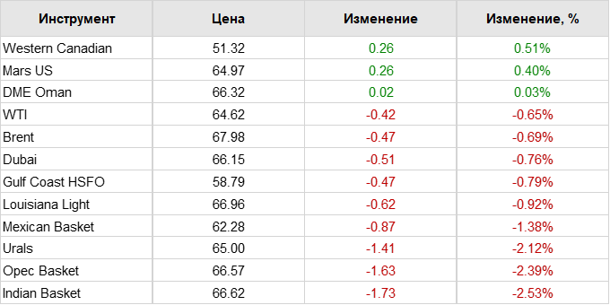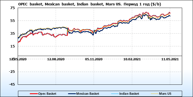 Нефть. Цены по сортам на 11 мая 2021