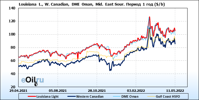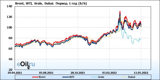 Средняя спотовая цена на нефть марки Brent в апреле составила $105 за баррель, что на $13 меньше, чем в марте. Несмотря на снижение по сравнению с мартом, цены на сырую нефть остаются выше $100. «Санкции в отношении России и другие действия независимых корпораций способствовали падению добычи нефти в России и продолжают создавать значительную неопределенность на рынке в отношении возможности дальнейших перебоев с поставками нефти»,— сообщает EIA.