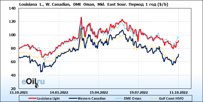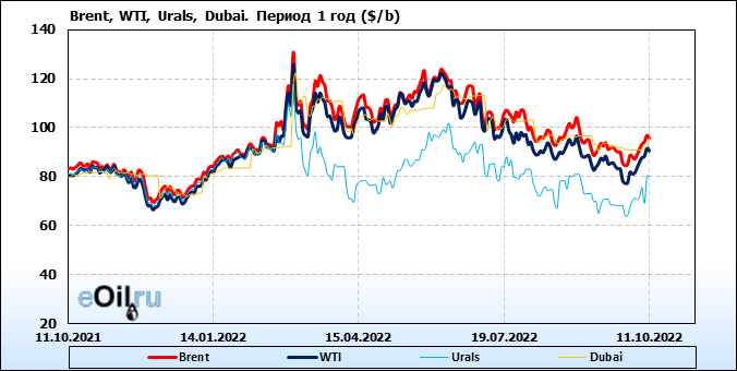 Нефть. Цены по сортам на 11 октября 2022