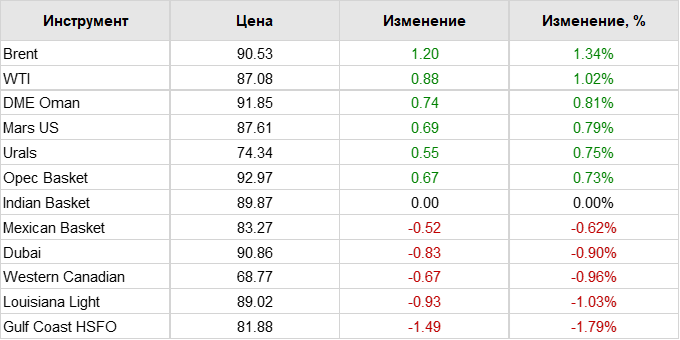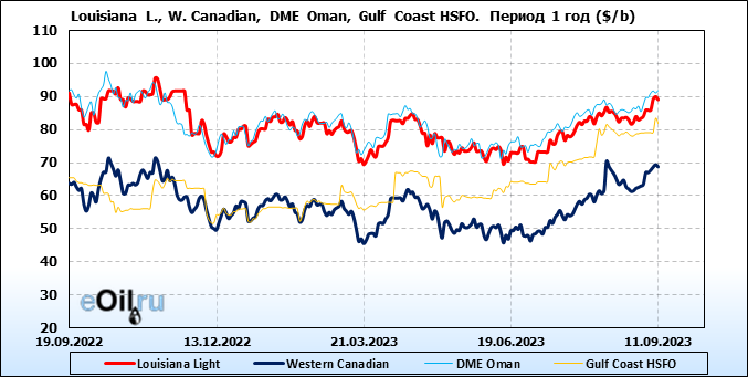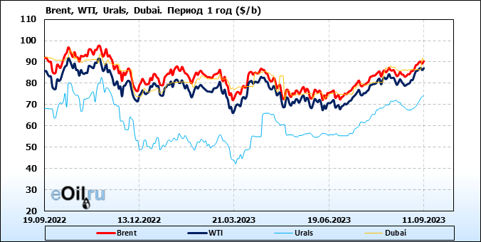 Нефть. Цены по сортам на 11 сентября 2023