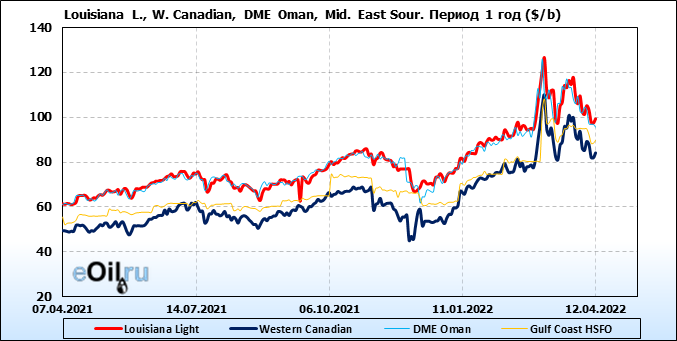 Нефть. Цены по сортам на 12 апреля 2022