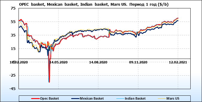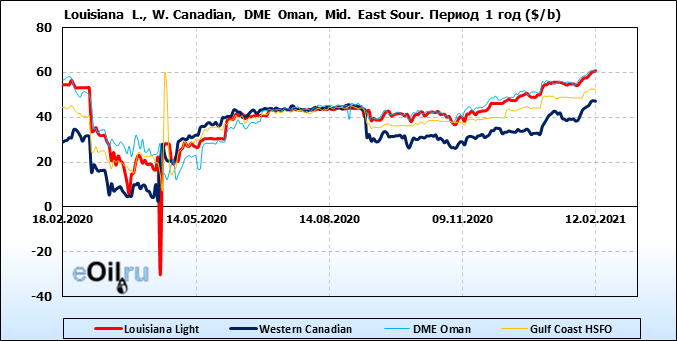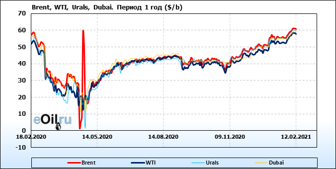 Нефть. Цены по сортам на 12 февраля 2021