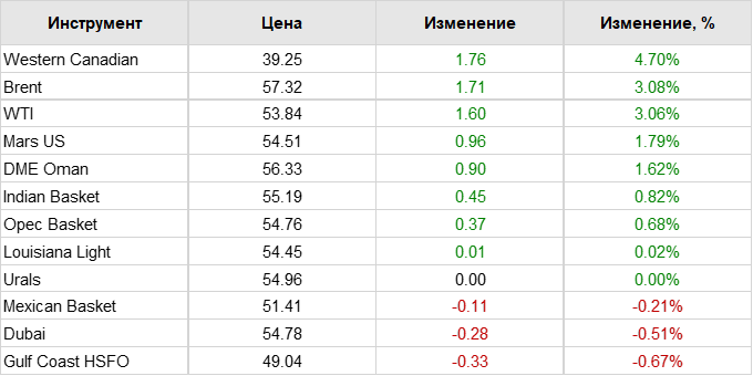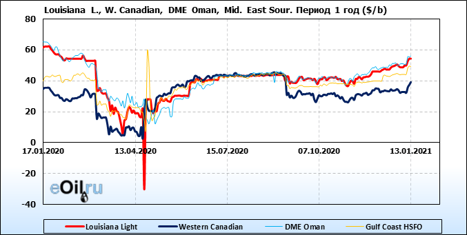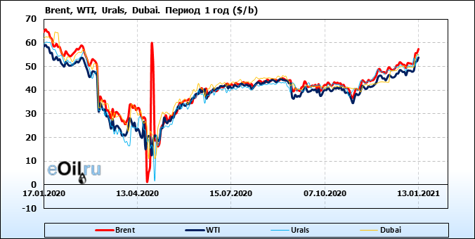 Нефть. Цены по сортам на 13 января 2021