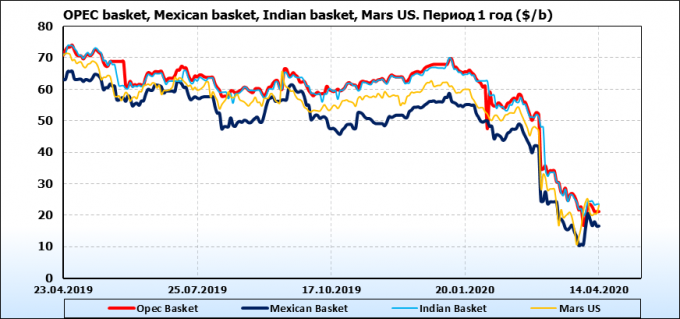 Нефть. Цены по сортам на 14 апреля 2020