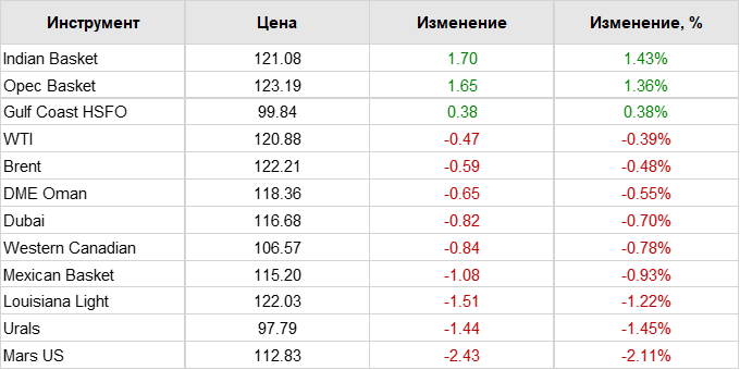 Нефть. Цены по сортам на 14 июня 2022