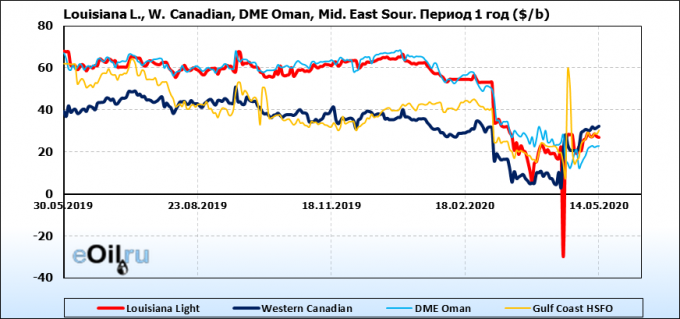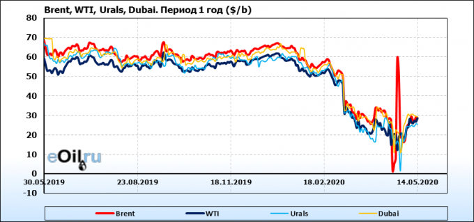 Нефть. Цены по сортам на 14 мая 2020