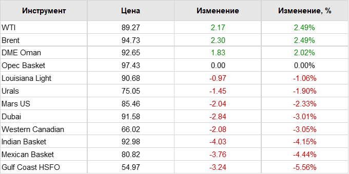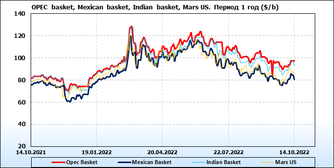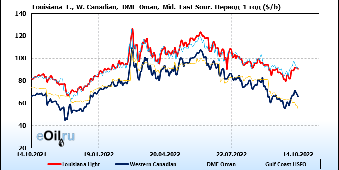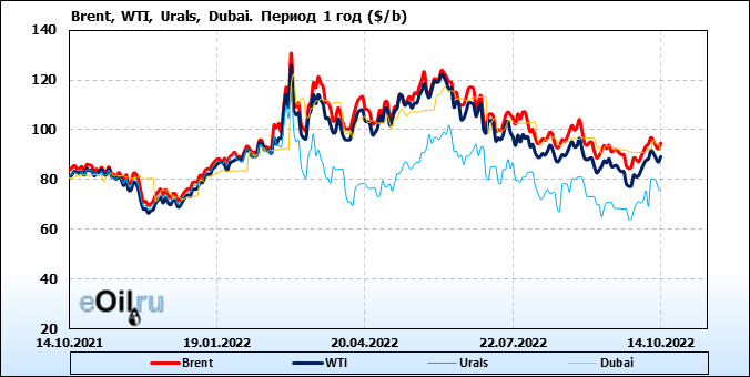 Нефть. Цены по сортам на 14 октября 2022