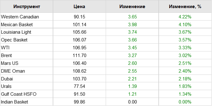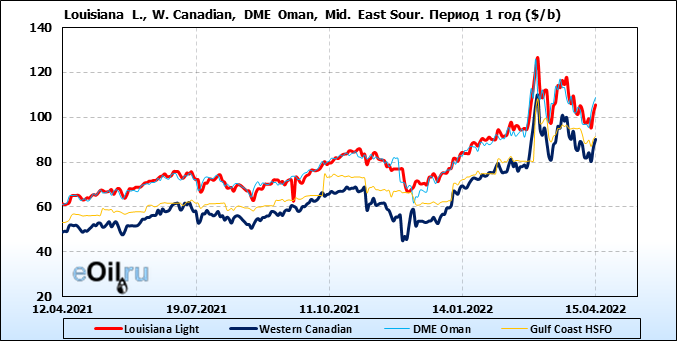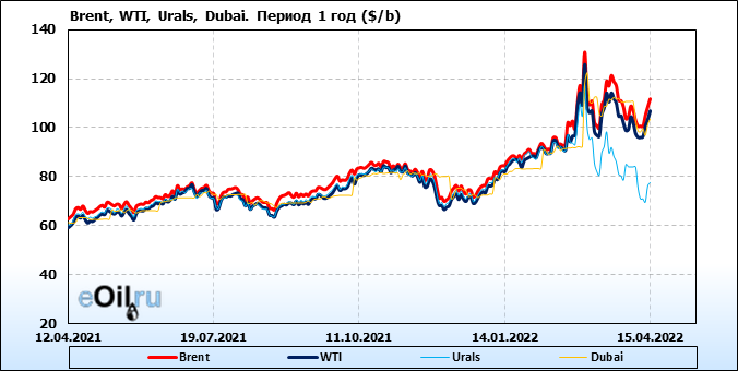 Нефть. Цены по сортам на 15 апреля 2022