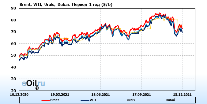 Нефть. Цены по сортам на 15 декабря 2021