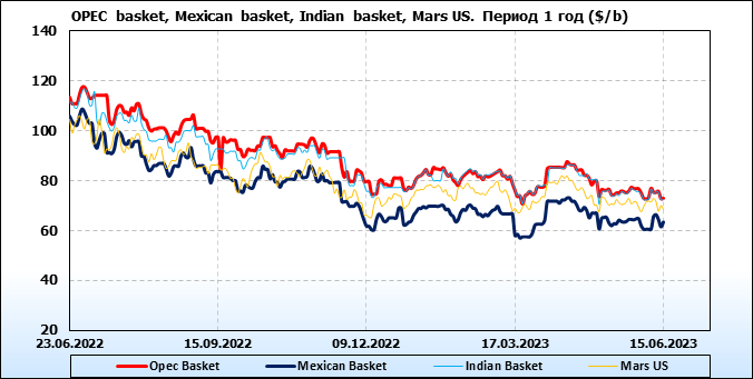 Об этом говорится в ежемесячном докладе ОПЕК, опубликованном 13 июня. При этом суточная добыча нефти в мире сократилась за тот же период к предыдущему месяцу на 1 млн барр. и составила 100,2 млн барр. Она все еще оставалась на 1,7 млн барр. выше, чем в мае 2022 г.