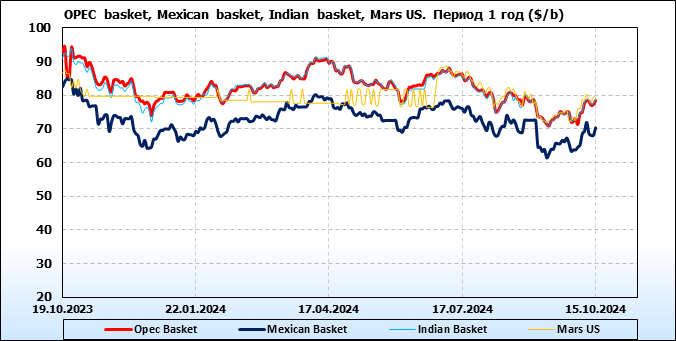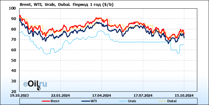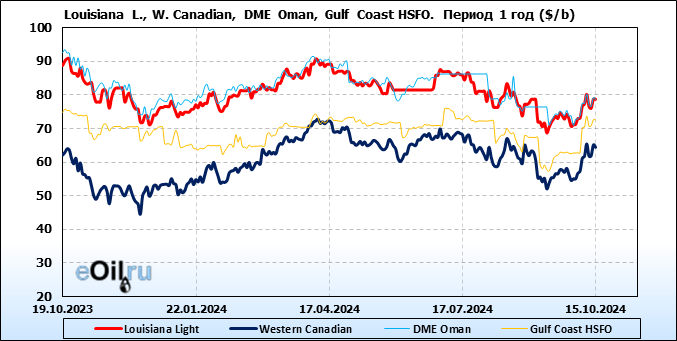 Нефть. Цены по сортам на 15 октября 2024