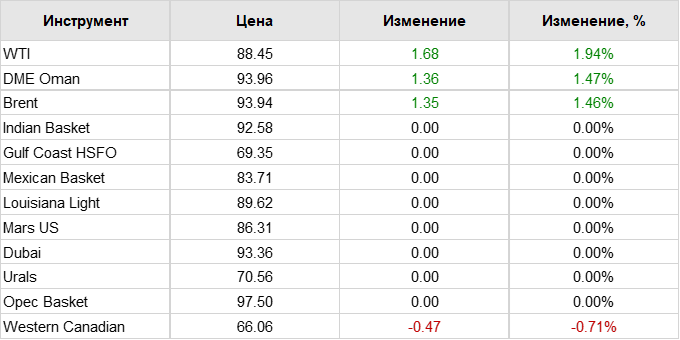 Нефть. Цены по сортам на 15 сентября 2022