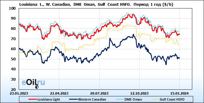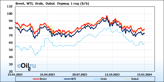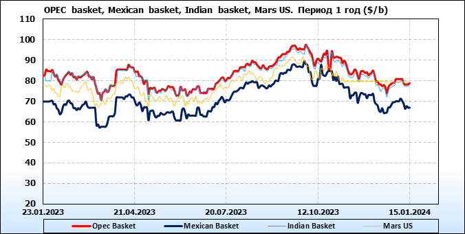 Нефть. Цены по сортам на 15 января 2024