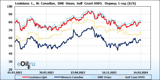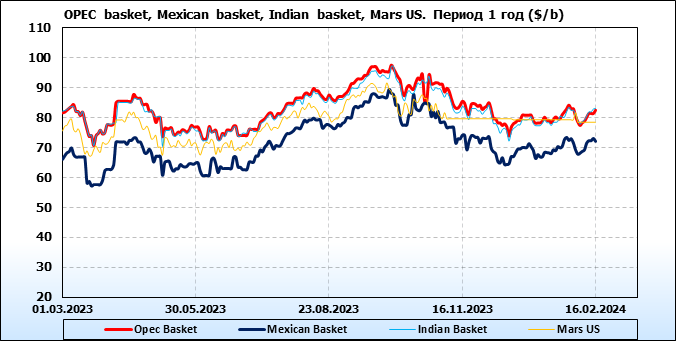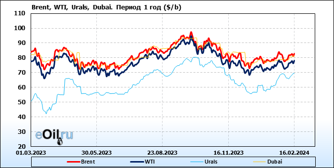 Нефть. Цены по сортам на 16 февраля 2024