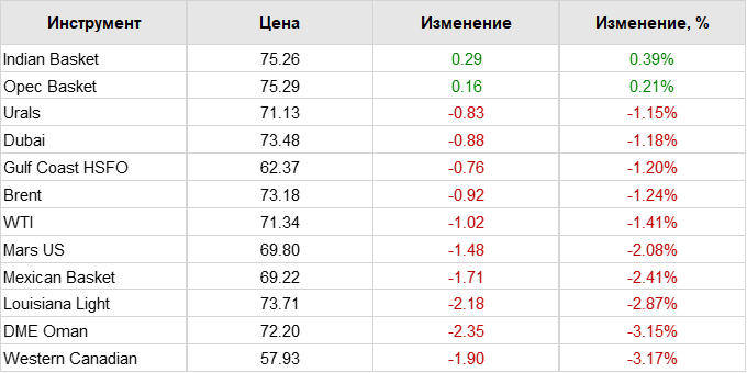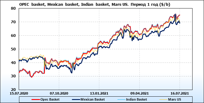 Нефть. Цены по сортам на 16 июля 2021