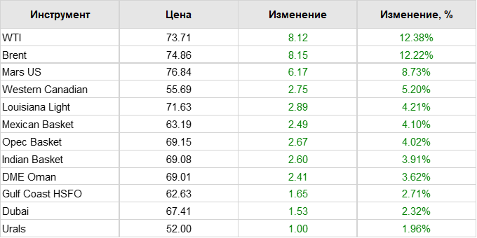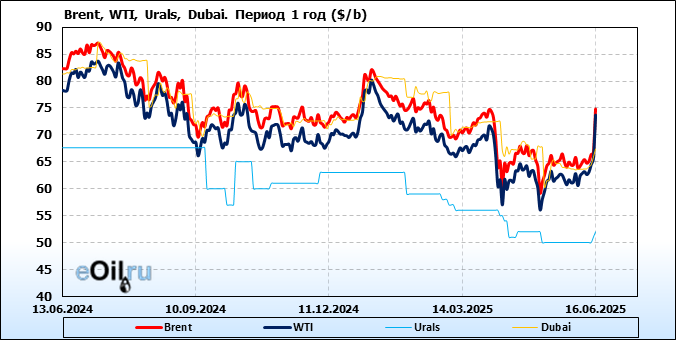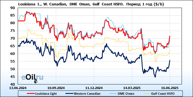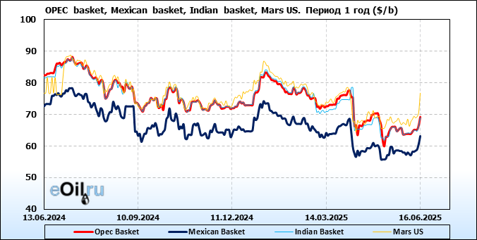 Нефть. Цены по сортам на 16 июня 2025