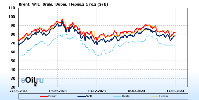 Нефть. Цены по сортам на 17 июня 2024
