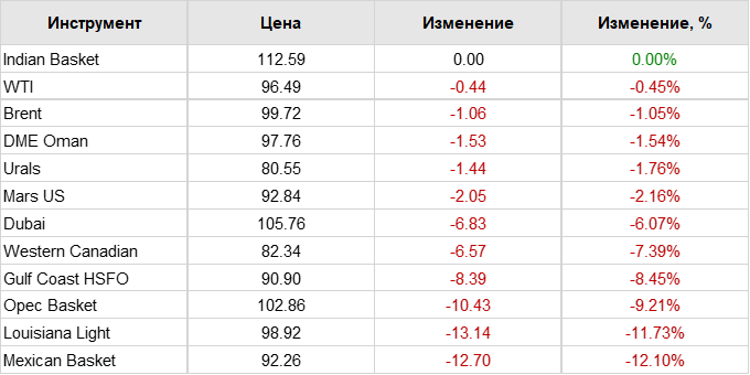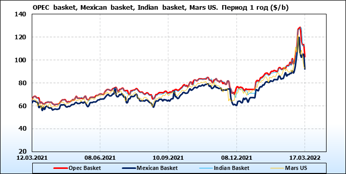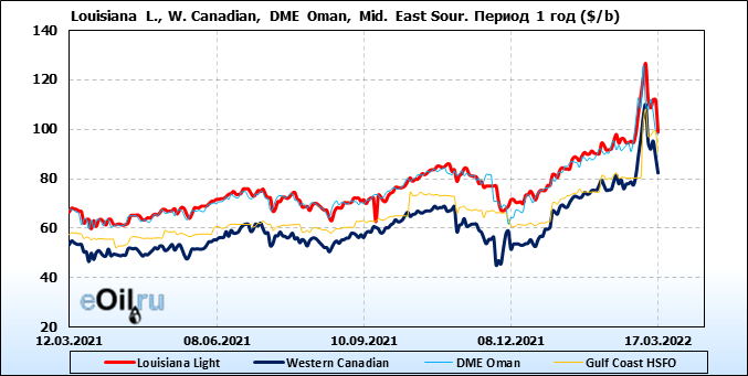 Нефть. Цены по сортам на 17 марта 2022